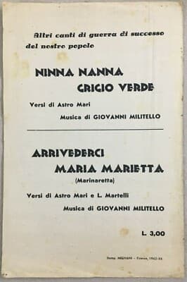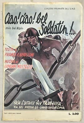 Ciao! Ciao! Bel Soldatin!... Mio Bel Alpin... Spartito Musicale, 1942