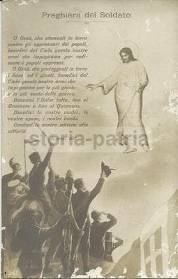 Militaria, Grande Guerra: Preghiera Dei Soldati, Bersaglieri E Alpini. Foto Cartolina Con Tricolore