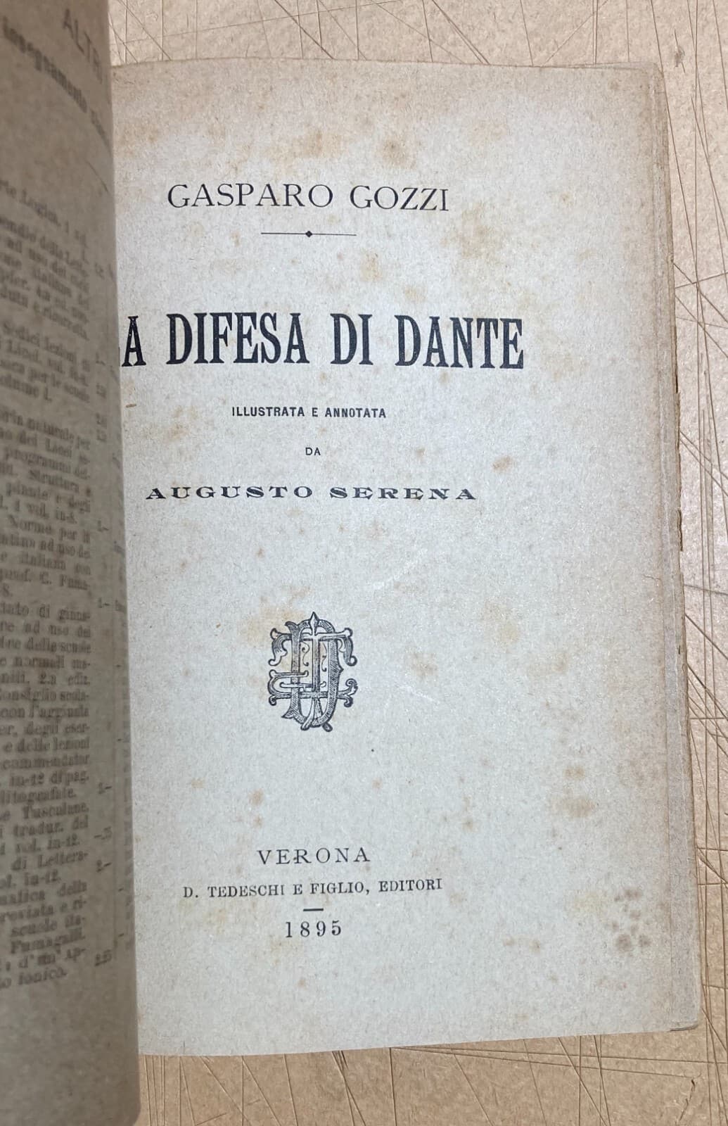 Gasparo Gozzi, La Difesa Di Dante Edizione Augusto Serena (1895)