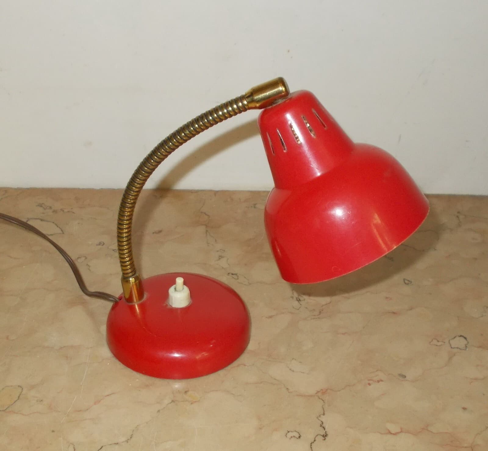 Modernariato, Design: Decorativa Lampada Da Scrivania O Comodino In Plastica Rossa