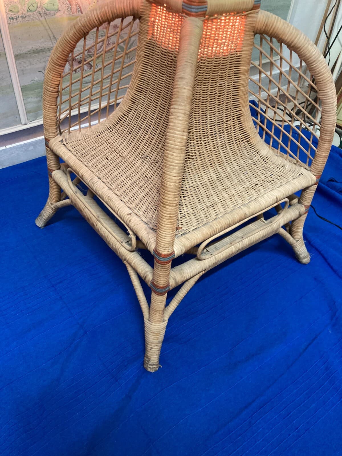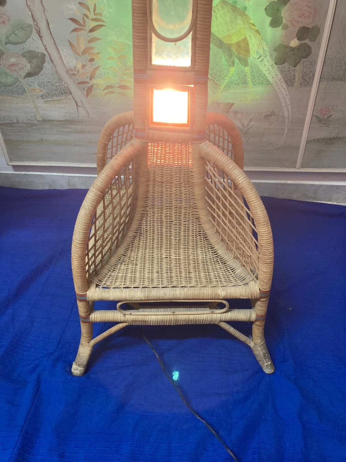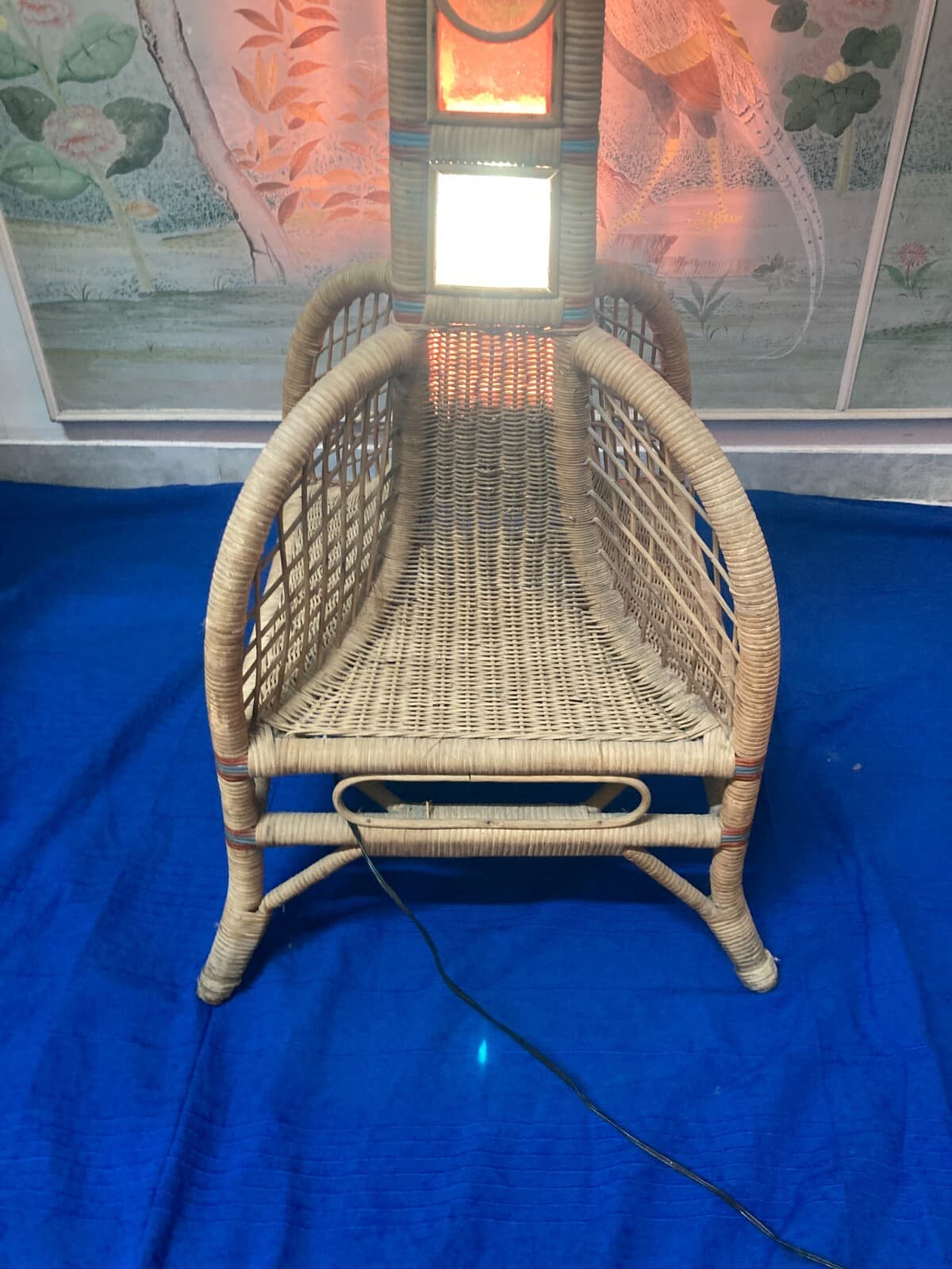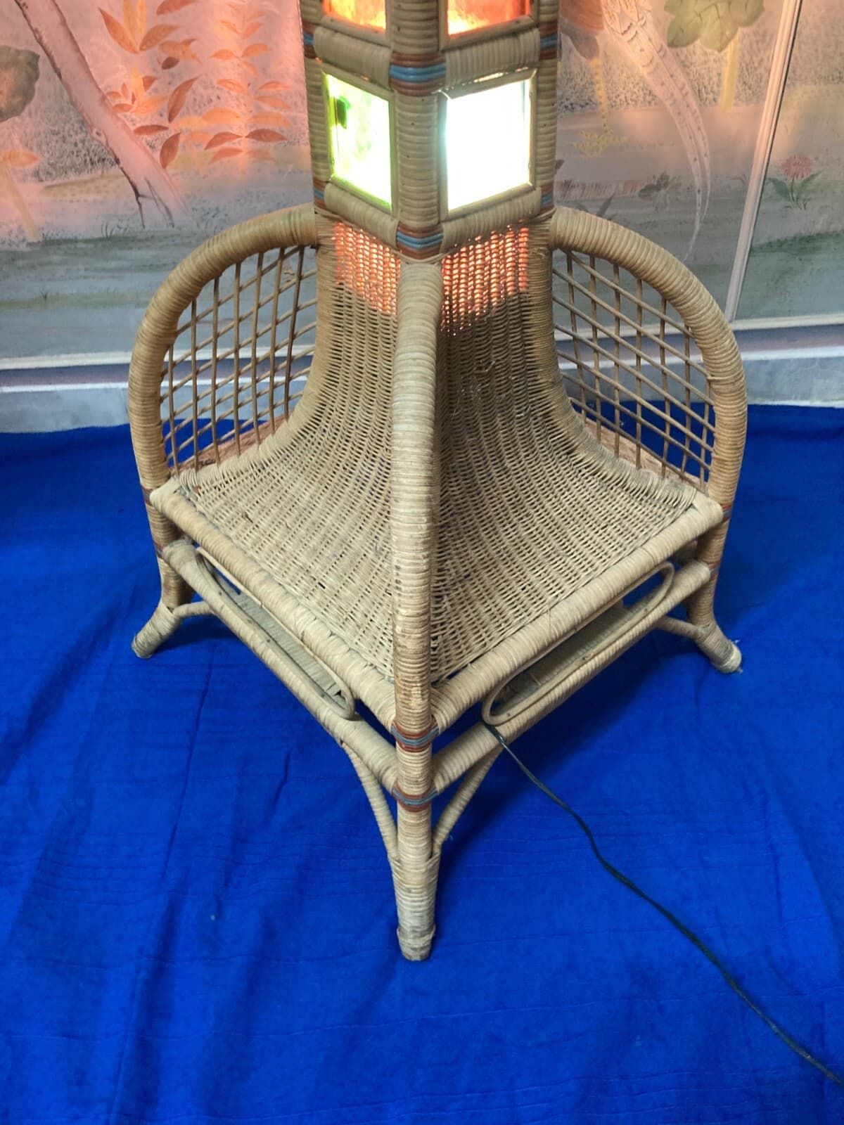 Modernariato, Design, Decorativa Lampada Piantana Con Vetri Colorati In Rattan E Vimini
