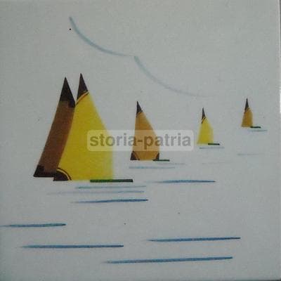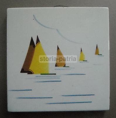 Marineria, Navigazione, Barche A Vela. Placca Ceramica Futurista