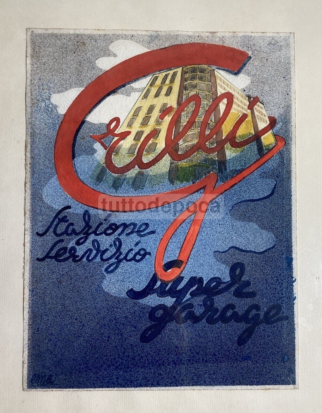 Grilli Stazione Di Servizio Automobili Super Garage Artistica Pubblicitaria Rara