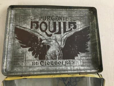 Purgante Aquila Rovigo: Scatola Pubblicitaria In Latta Litografata