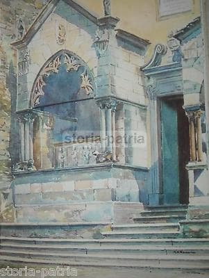 Lago Di Como, Corenno Plinio. Tomba Dei Conti Andreani. Antica Stampa A Colori.