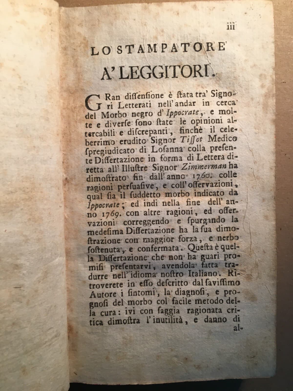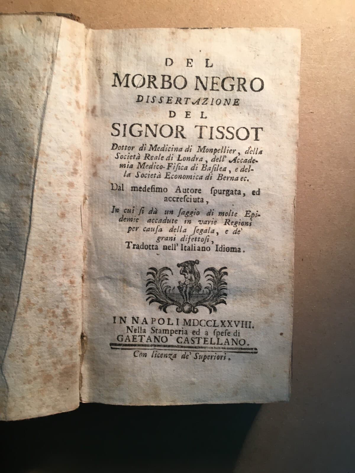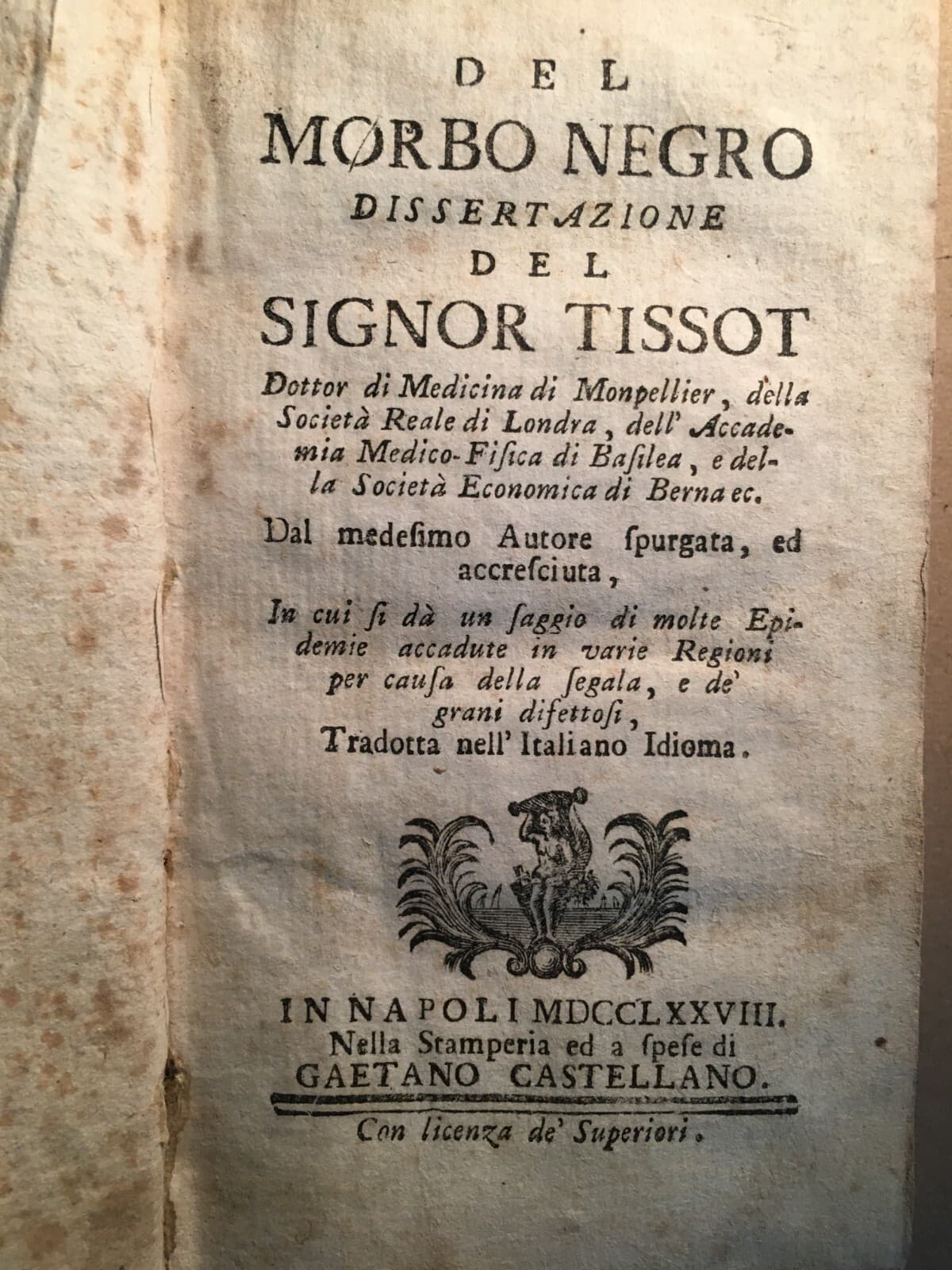 Tissot: Del Morbo Negro Razze Umane Ed Epidemiologia (Napoli, 1778)