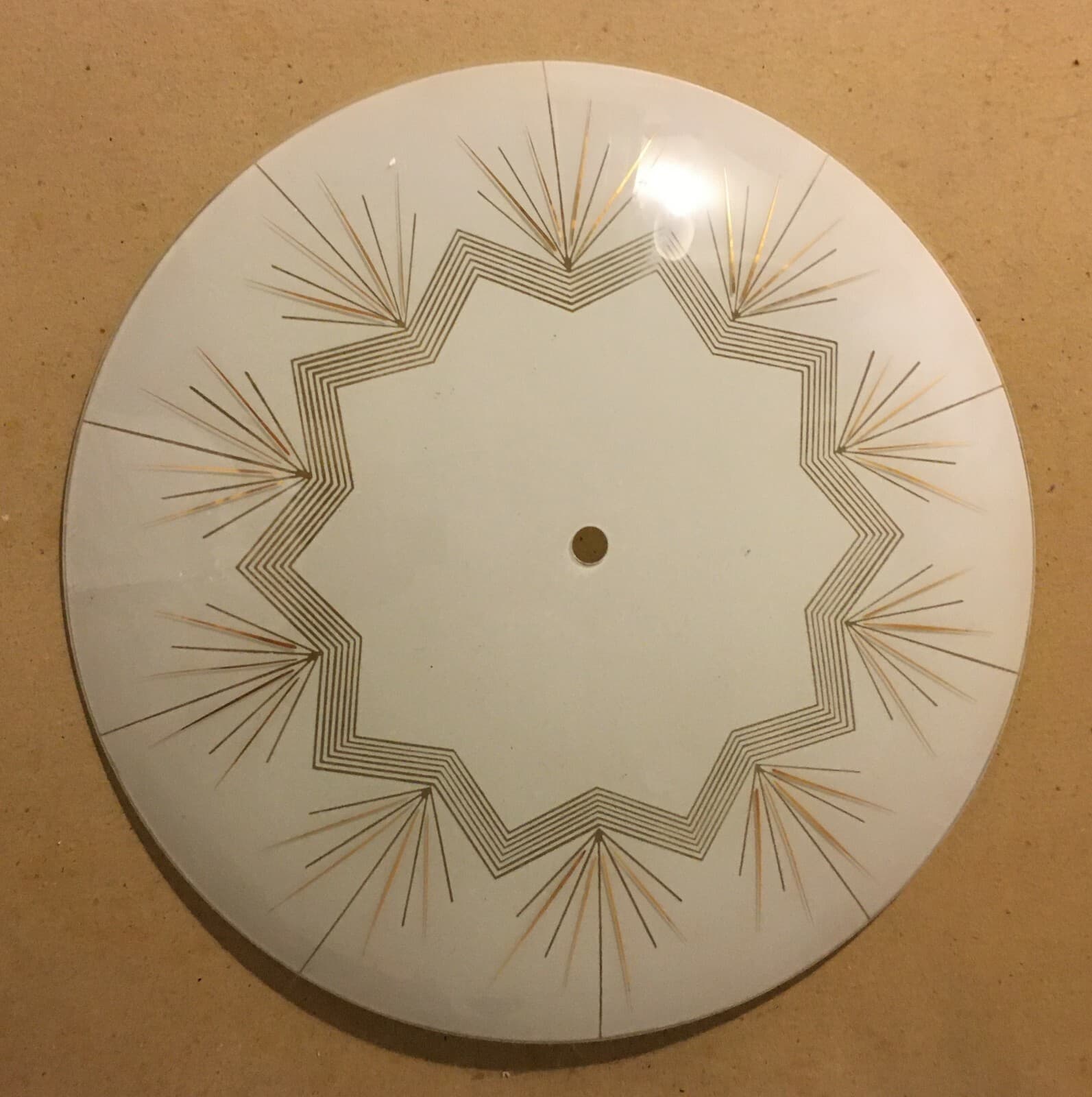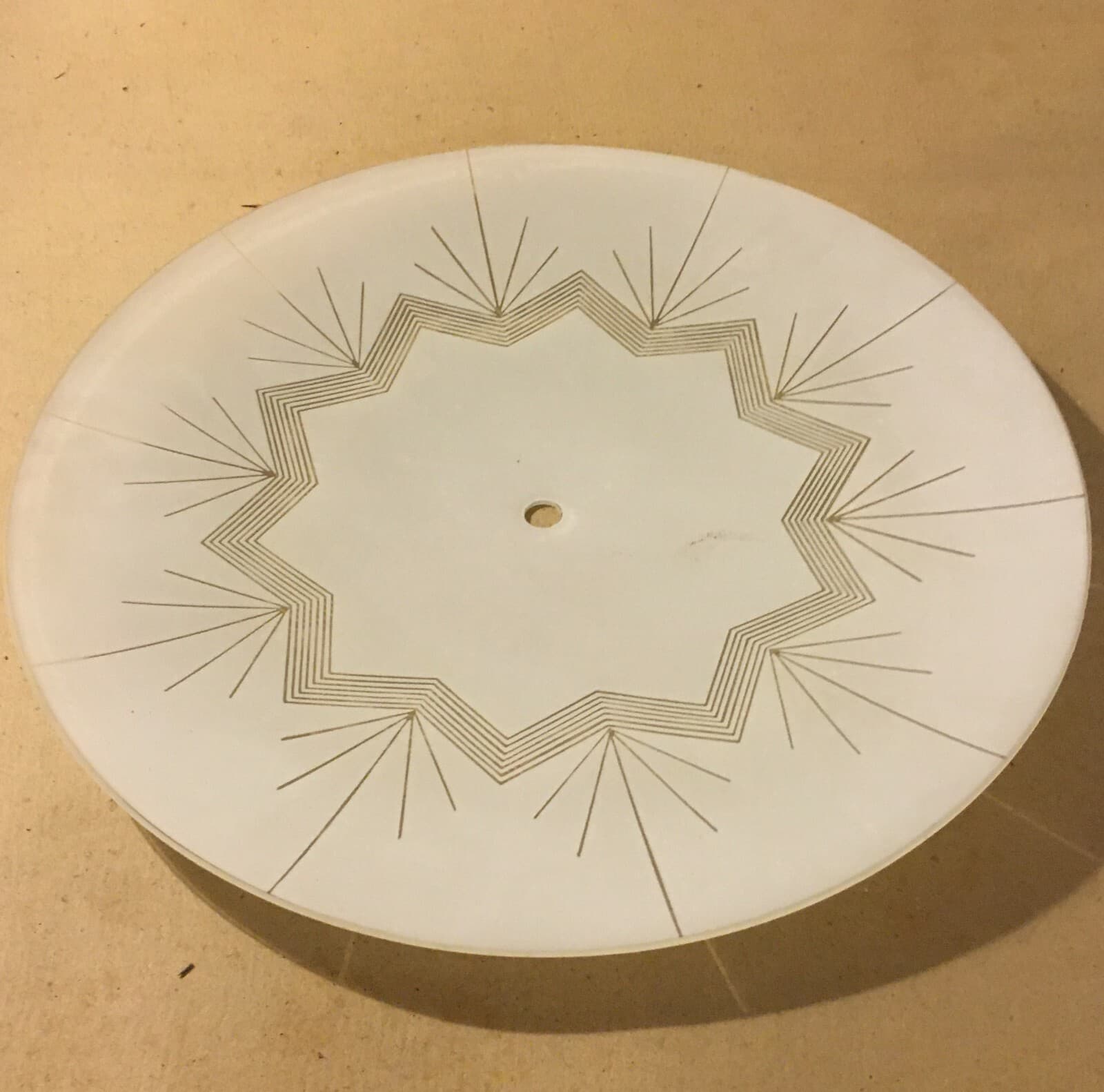Modernariato E Design: Coppa Per Lampada In Vetro Satinato E Dorato d'Epoca, 41 Cm
