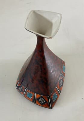 Vaso In Ceramica Stilizzato E Policromo, Design Del Novecento