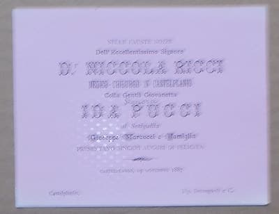 Marche, Senigallia. Antiche Nozze Ricci Pucci. Invito d'Epoca, Angelo Zabban, 1887