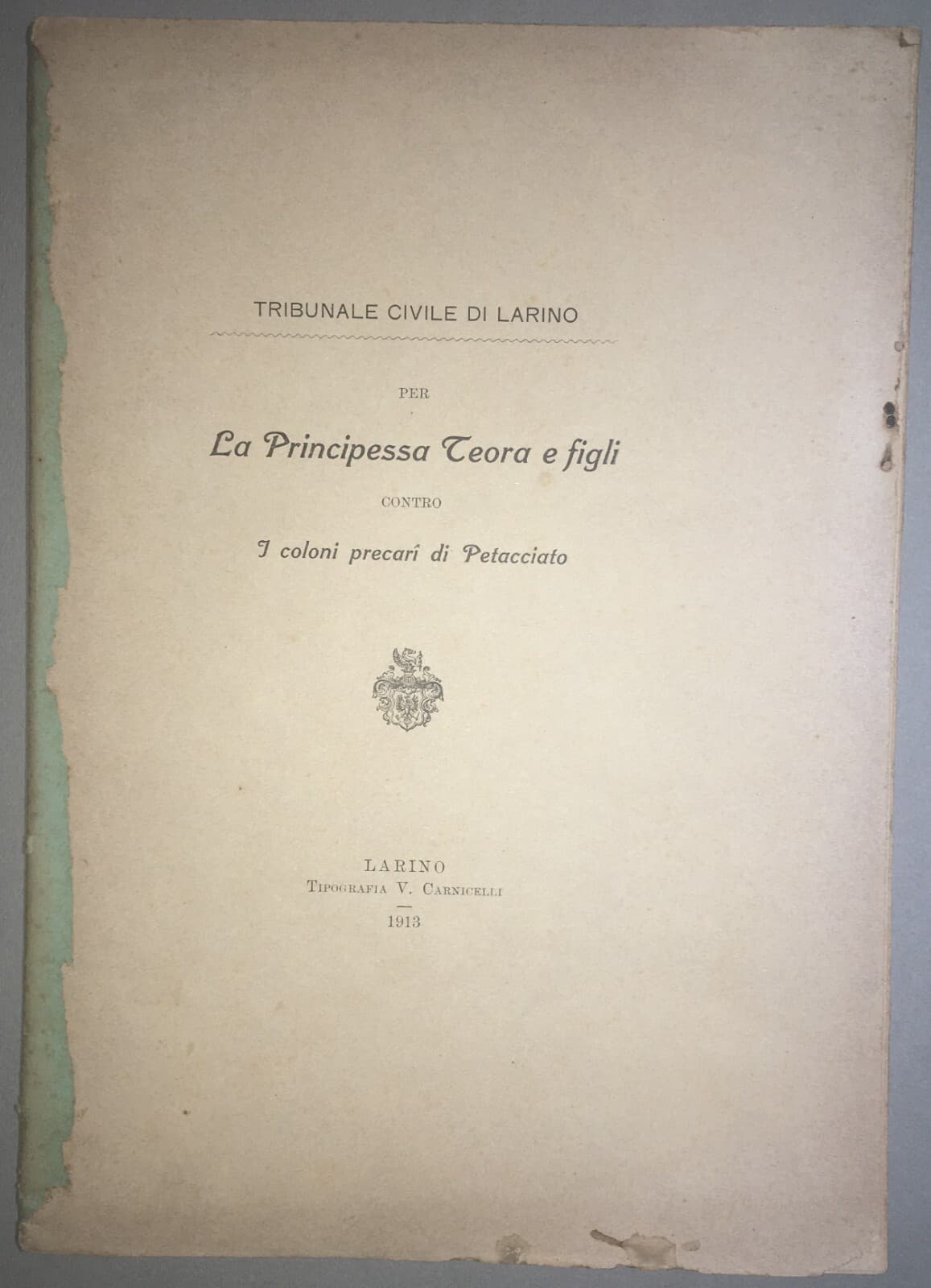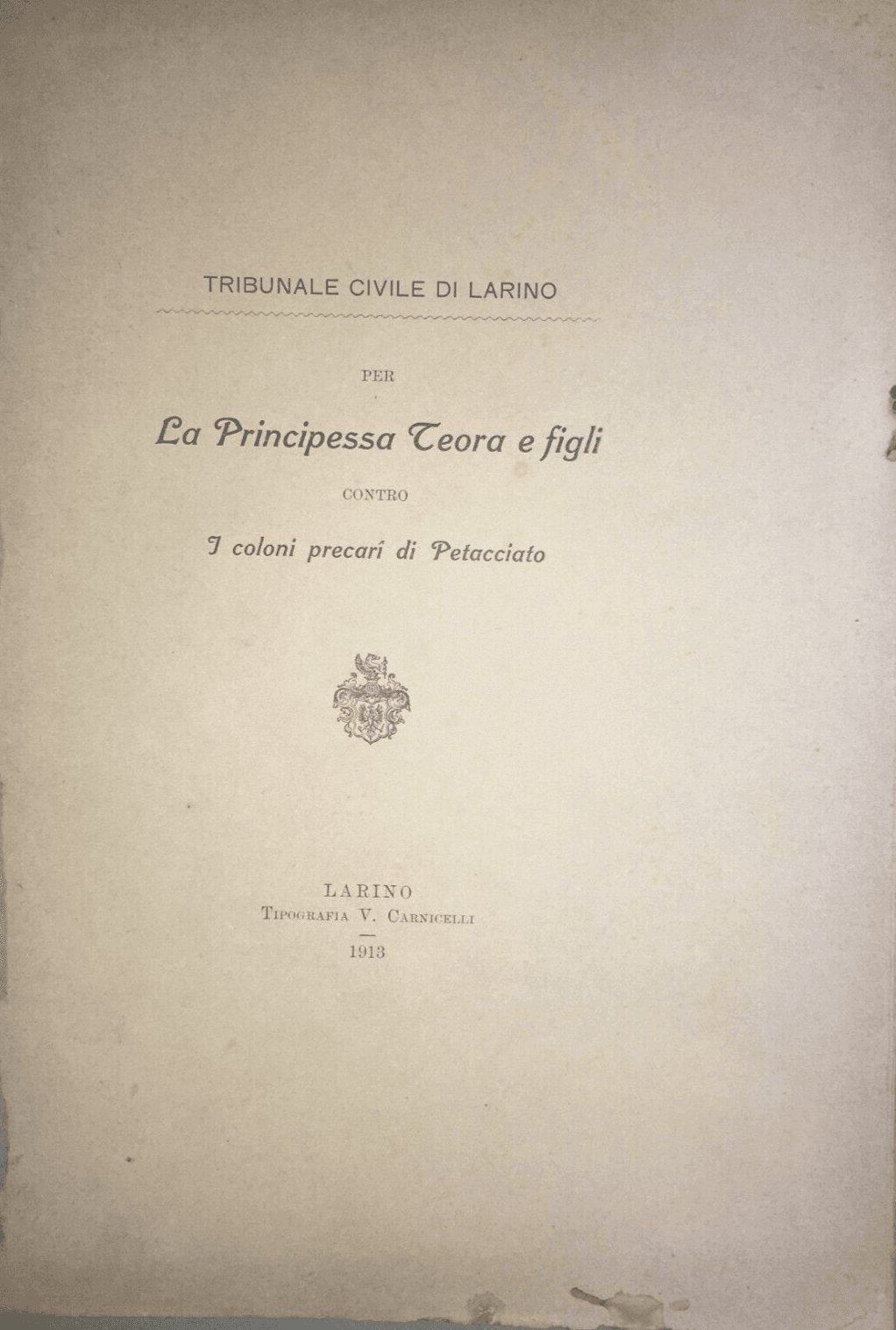 Per La Principessa Teora E Figli Contro I Coloni Di Petacciato (Larino, 1913)