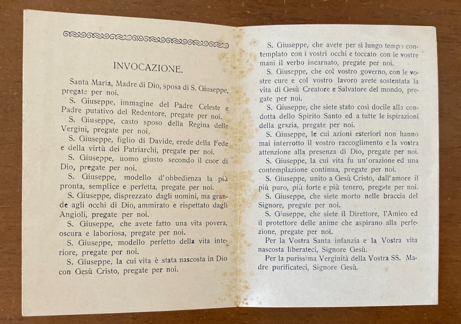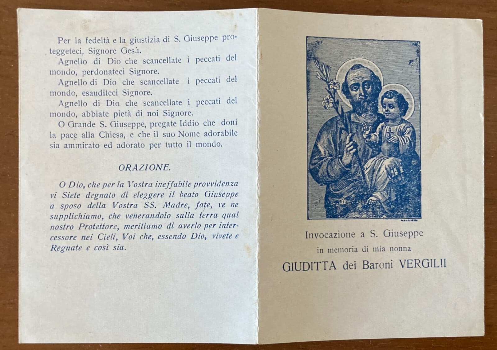 Abruzzo, Depliant Devozionale, Preghiera A San Giuseppe, Giuditta Dei Baroni Vergilii