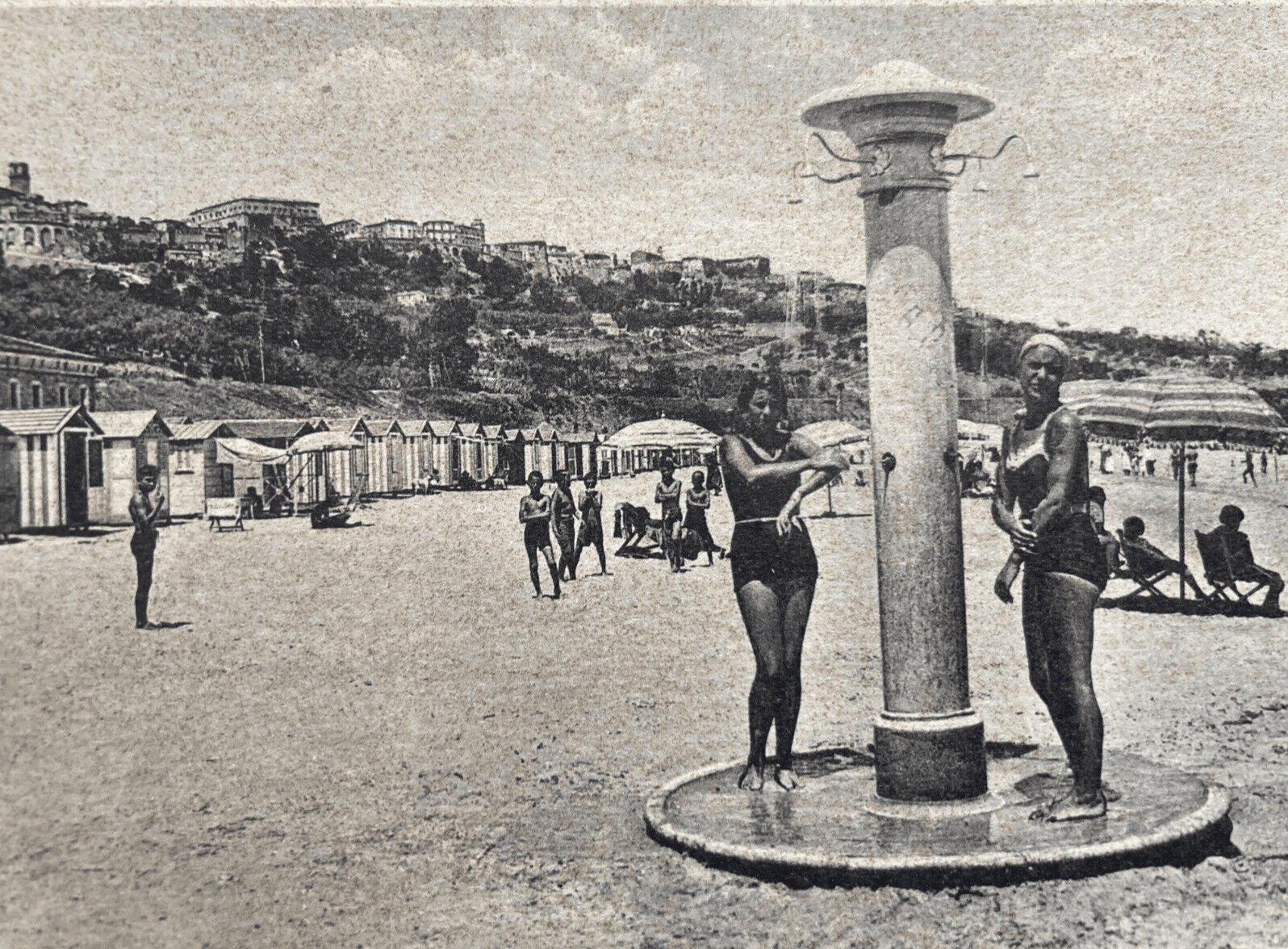 Abruzzo, Vasto: Spiaggia, Veduta Balneare. Bagnanti Sotto La Doccia