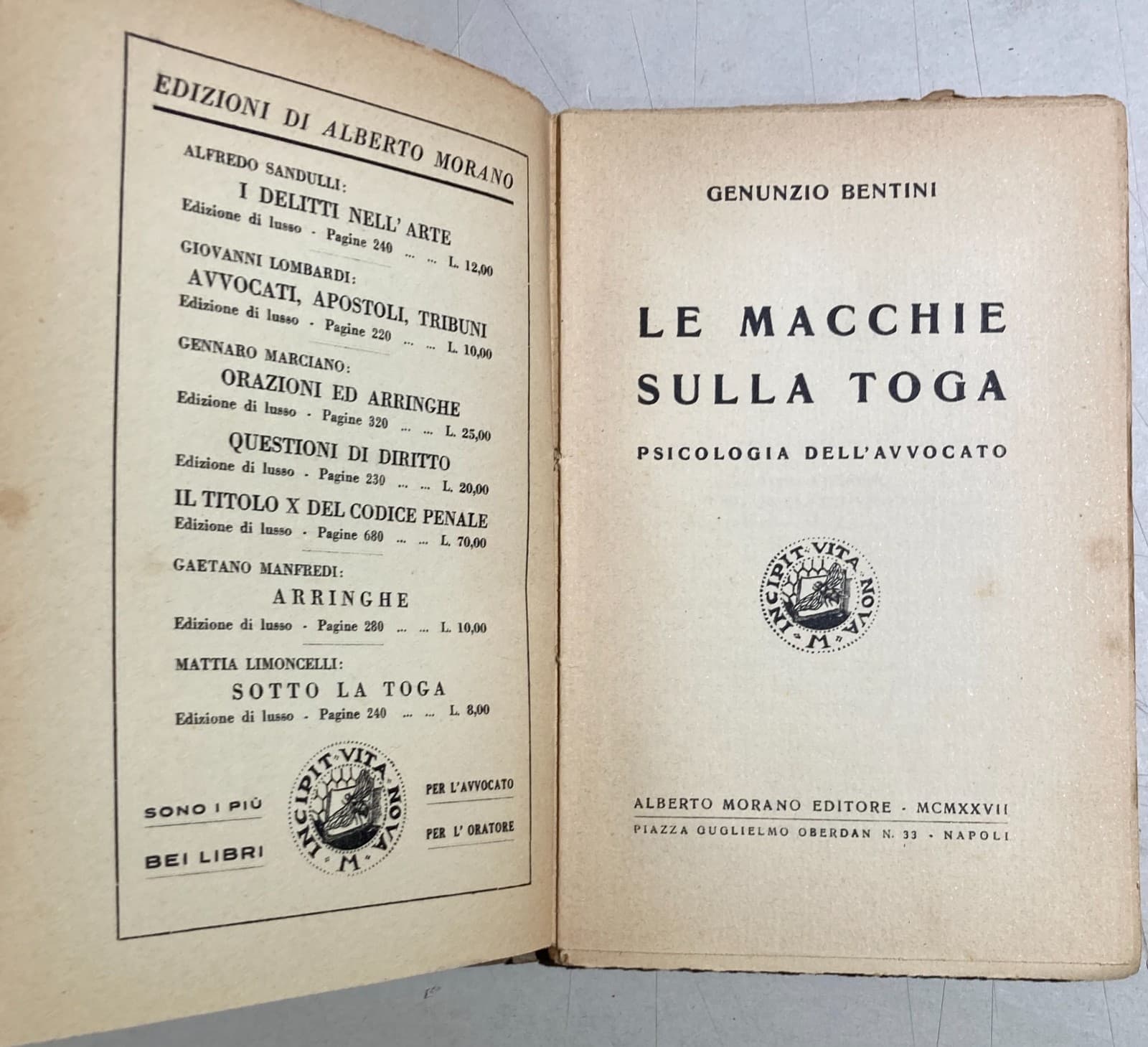 Genunzio Bentini, Le Macchie Sulla Toga: Psicologia Dell'Avvocato. Napoli, 1927
