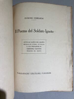 Militaria Grande Guerra Coselschi Poema Del Soldato Ignoto 1925