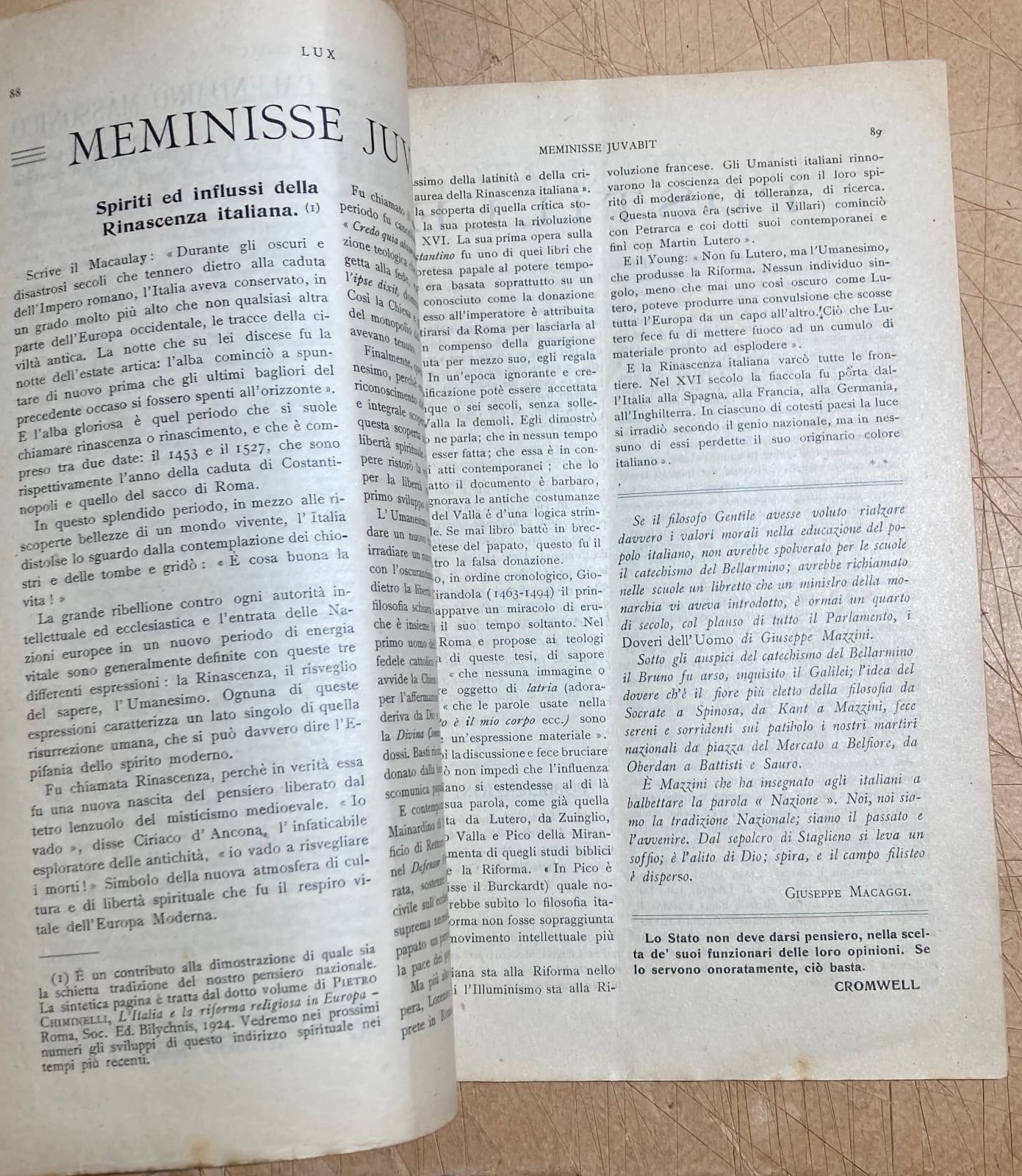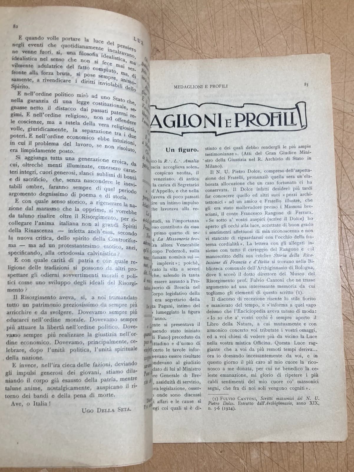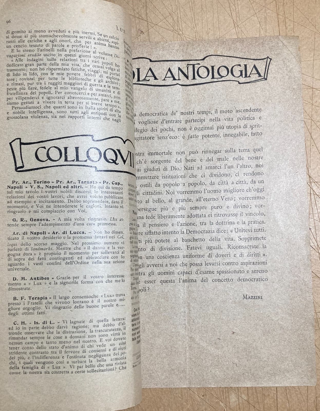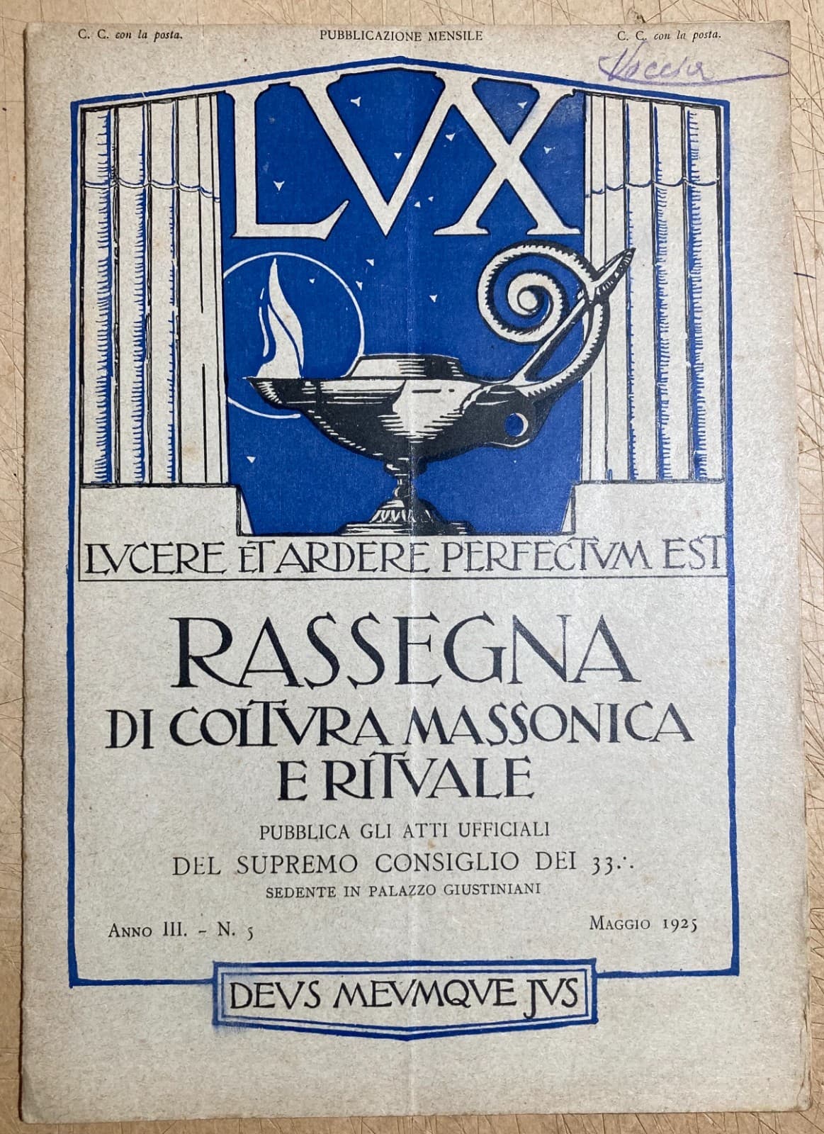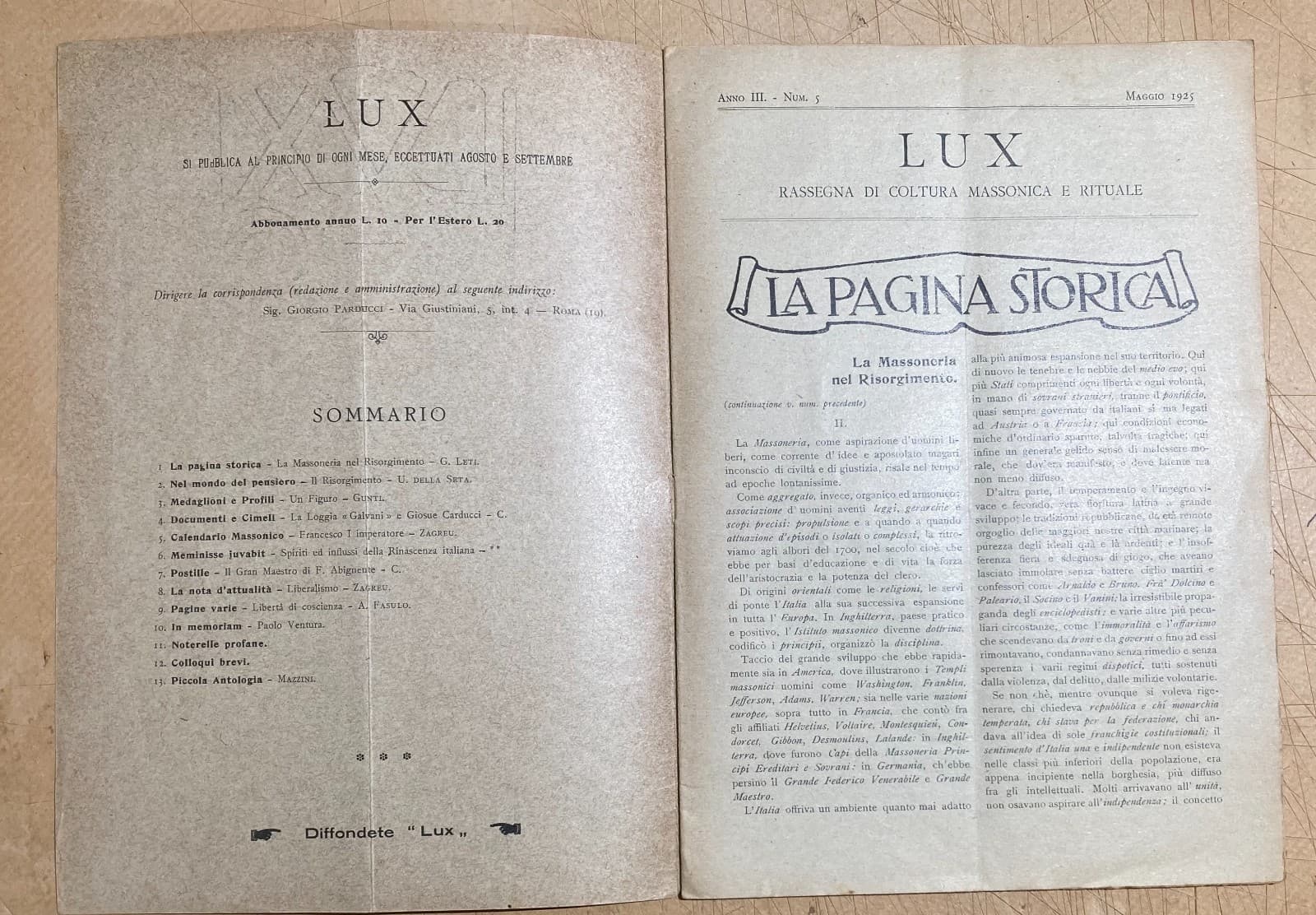 Massoneria E Risorgimento: Antica Rivista Lux, Maggio 1925, Loggia Ponzio Di Nicastro