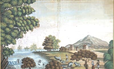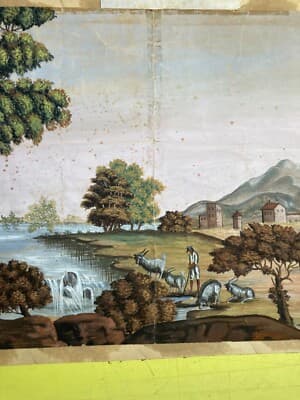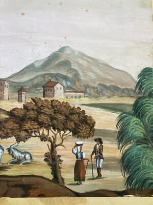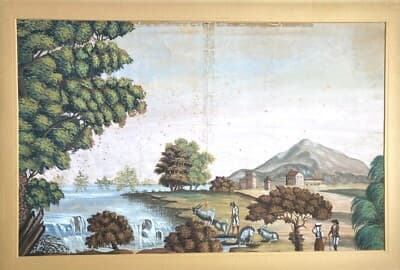 Veduta Pastorale Con Scena Bucolica, Dipinto A Tempera E Gouache, Metà XIX Secolo