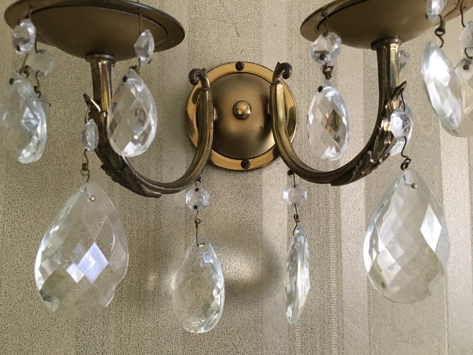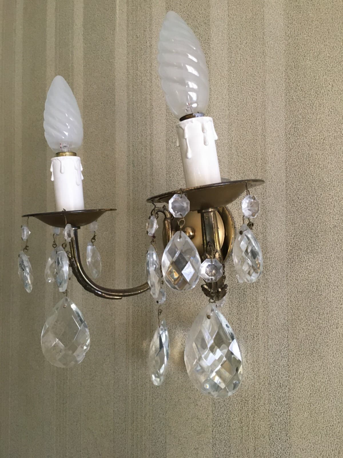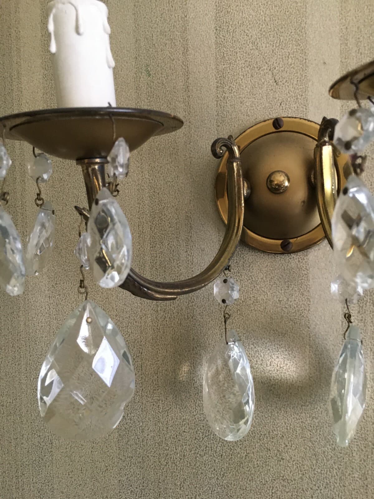 Applique Decorativa Con Prismi In Ottone E Vetro, Metà Del '900