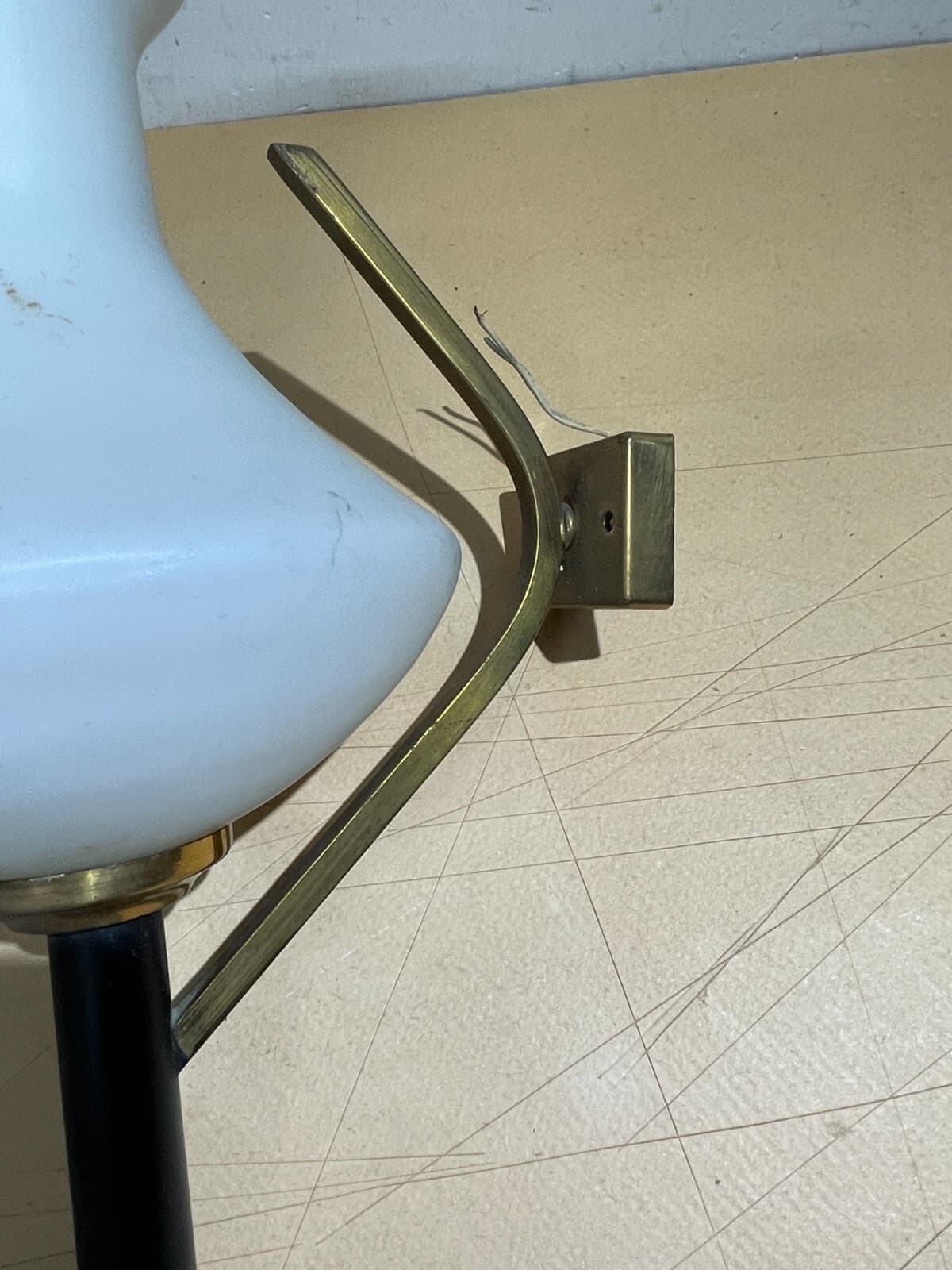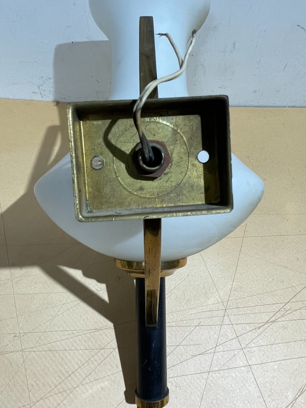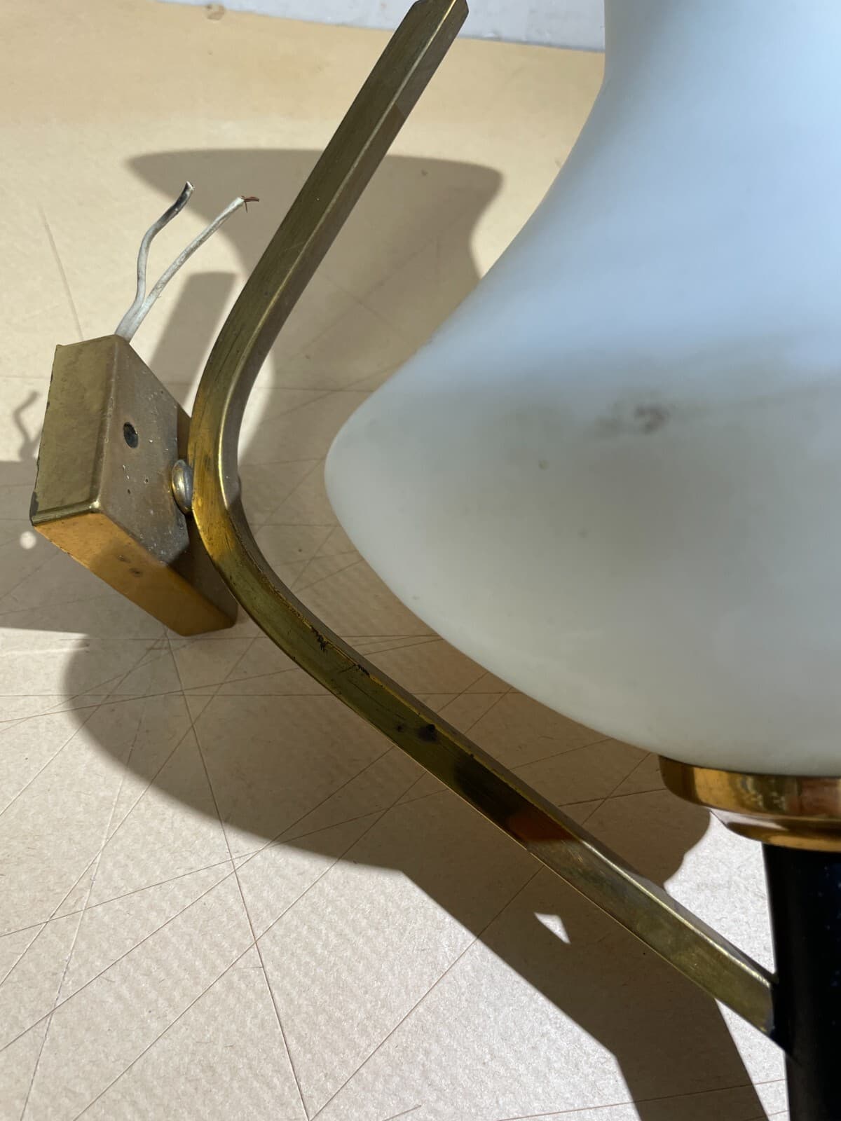 Lampada Da Parete Applique In Vetro Opalescente E Ottone, Stile Stilnovo