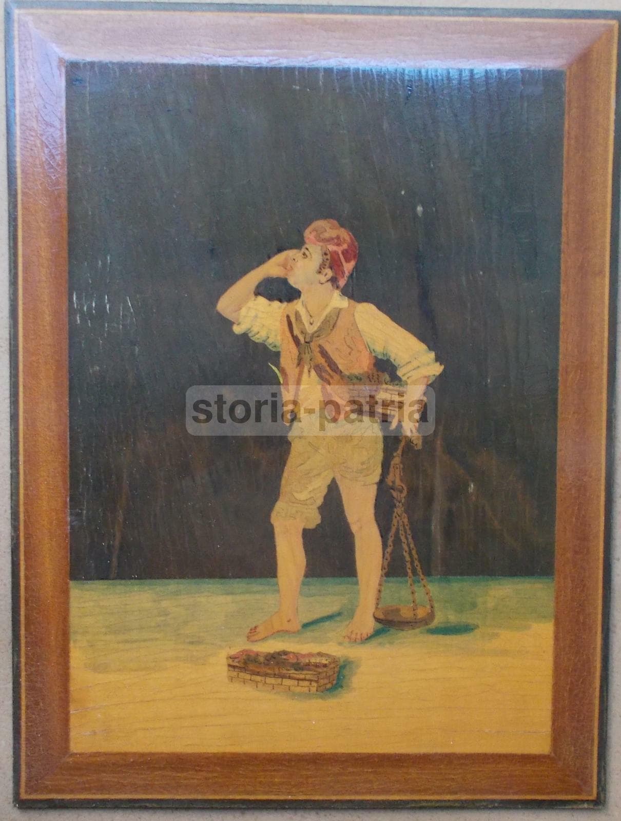 Pannello Intarsiato Con Venditore Ambulante, Manifattura Di Sorrento