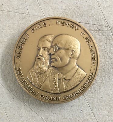 Medaglia Massonica Commemorativa Albert Pike E Henry C. Clausen 1983 Artista O. Piccione