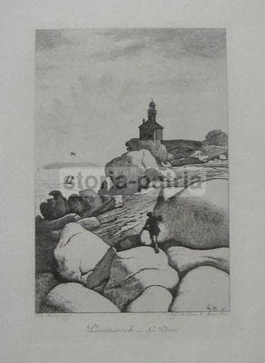 Ploumanach, Faro, Veduta Costiera, Artista Th. Busnel, Salmon Ardail, Antica Incisione