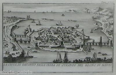 Puglia, Salento, Taranto: Antica Veduta Del Porto Con Cinta Muraria E Velieri, XVIII Secolo