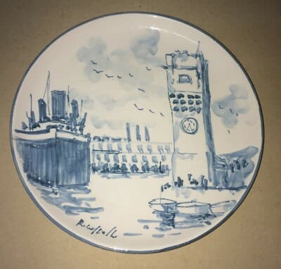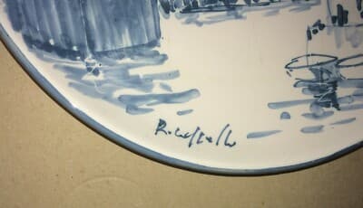 Savona, Albatro: Veduta Decorativa, Paesaggio Con Nave. Piatto Da Collezione Firmato