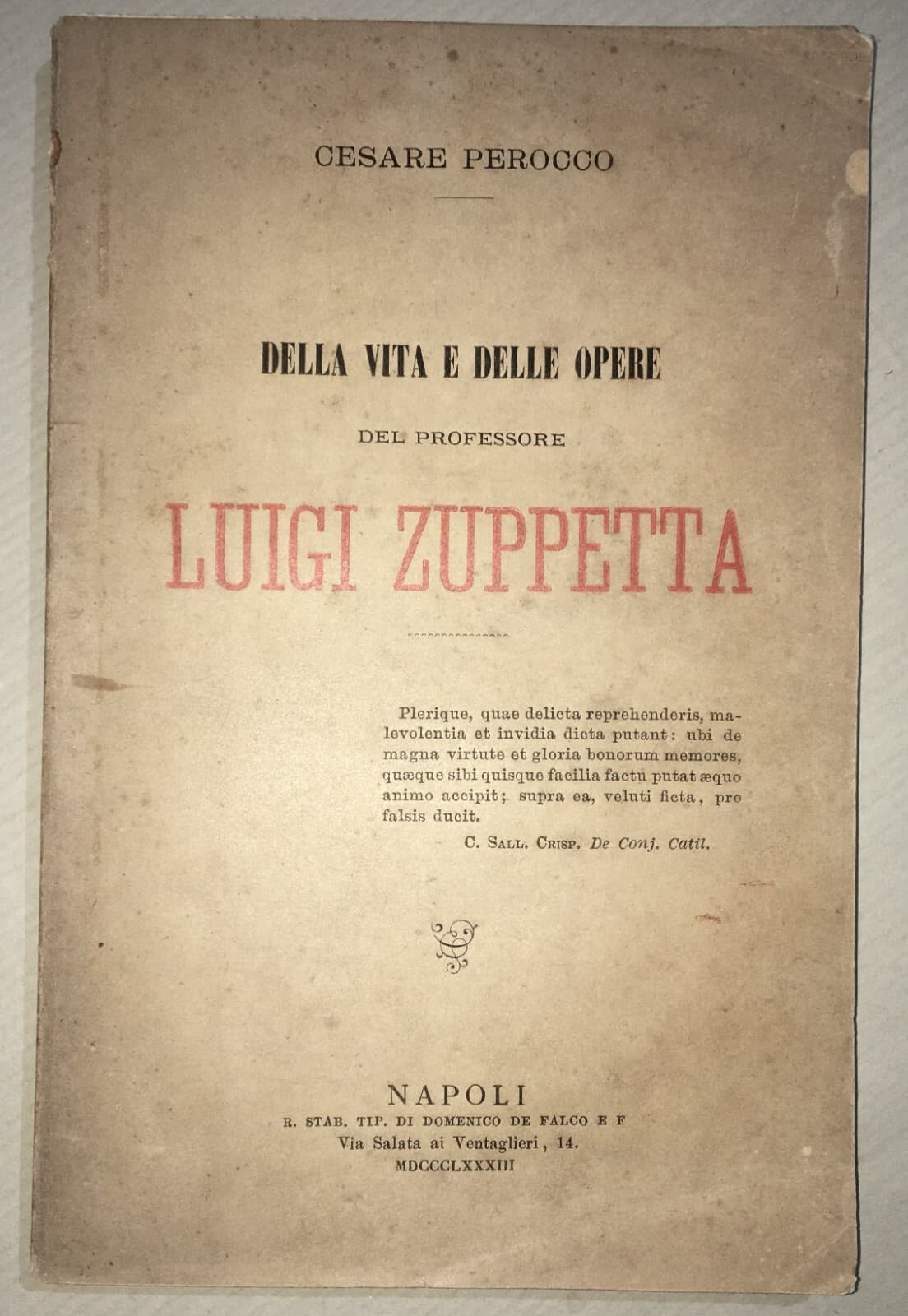 Risorgimento, Politica, Garibaldi, Puglia: Luigi Zuppetta (Perocco) Antica Edizione