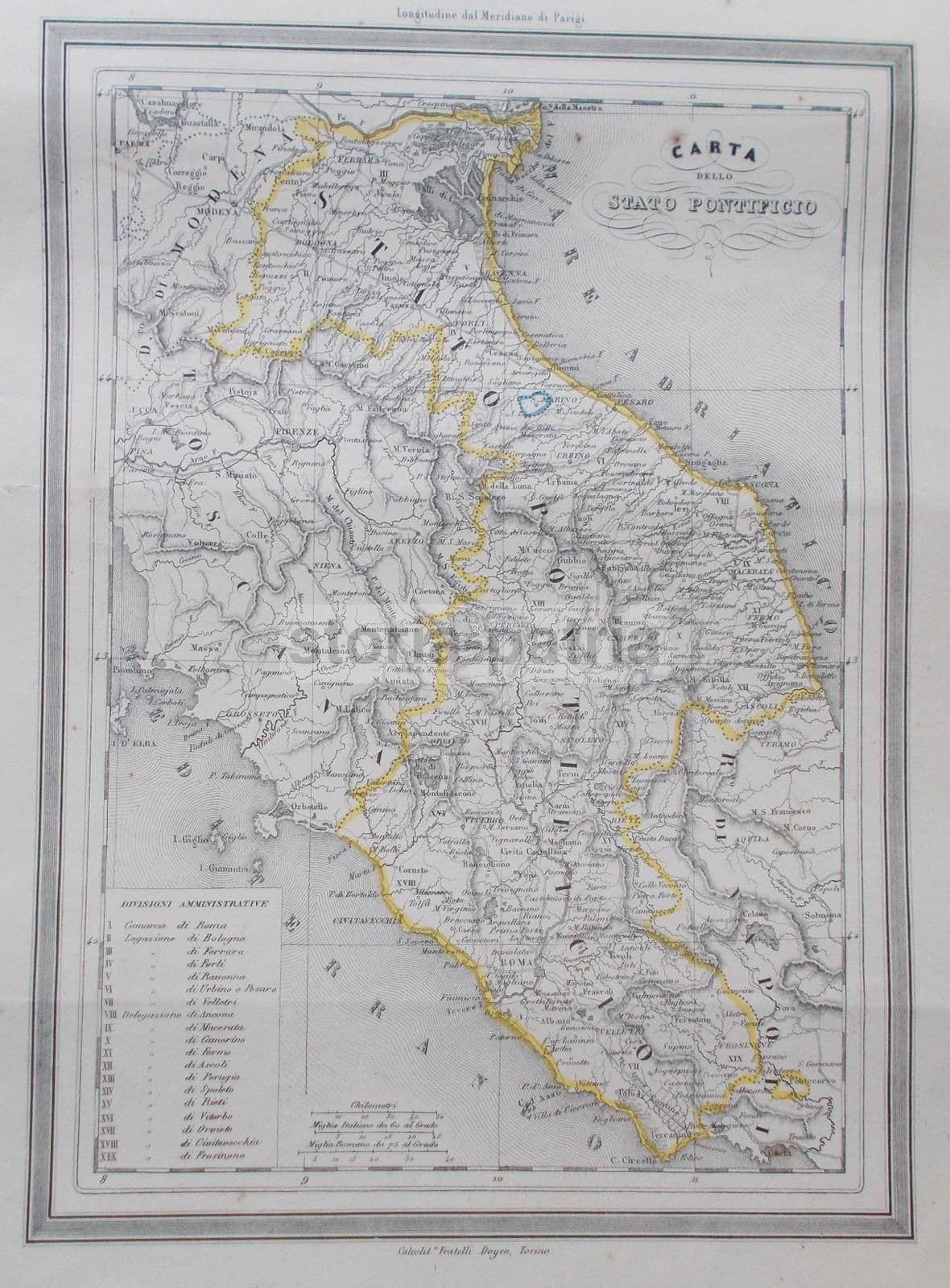 Mappa Antica Dello Stato Pontificio (1860) Con Emilia Romagna, Lazio E Marche