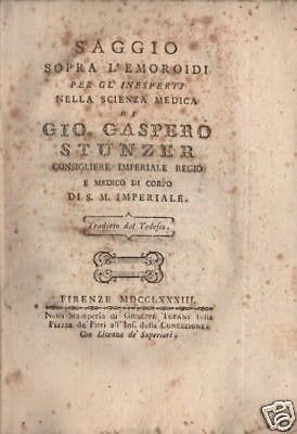 Saggio Sopra L'Emoroidi, Giovanni Gaspero Stunzer, 1783, Prima Edizione, Firenze