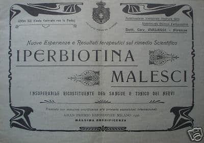 Catalogo Iperbiotina Malesci Firenze, Primo '900, Pubblicità