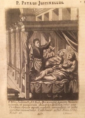 Gesuiti: Pietro Giustinello, Brescia, Castiglione, Nosocomio. Antica Incisione Del '600