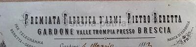 Gardone Val Trompia, Armeria Beretta: Carta Da Lettera Pubblicitaria Illustrata, 1882