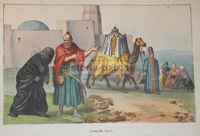 Oriente, Asia: Costumi Popolari E Cammello Sacro. Stampa Antica Orientalista E Devozionale