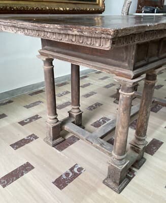 Tavolo Scrittoio Antico Da Restaurare Con Cassetto E Gambe Tornite