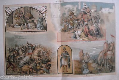 Illustrazione A Colori Di Tancredi Scarpelli: Il Carroccio Di Ariberto Da Milano, Primo '900
