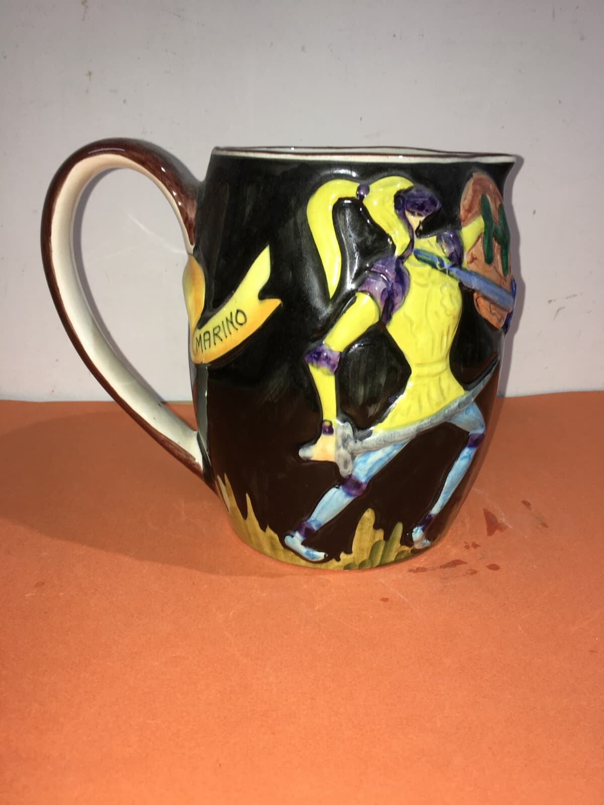 Ceramica Titano: Brocca Decorativa Con Scena Di Duello Medievale