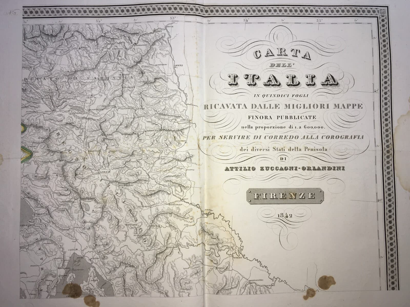 Antica Cartografia: Trieste, Capo d'Istria, Illiria, Carinzia Zuccagni Orlandini, 1842