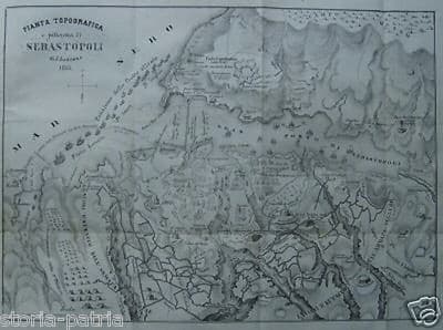 Militaria, Crimea, Sebastopoli: Antica Cartografia, Mappa d'Epoca, 1855