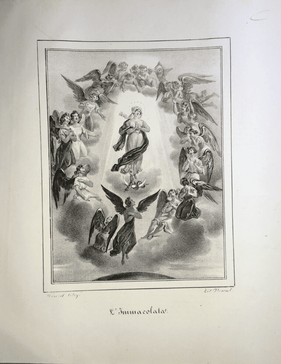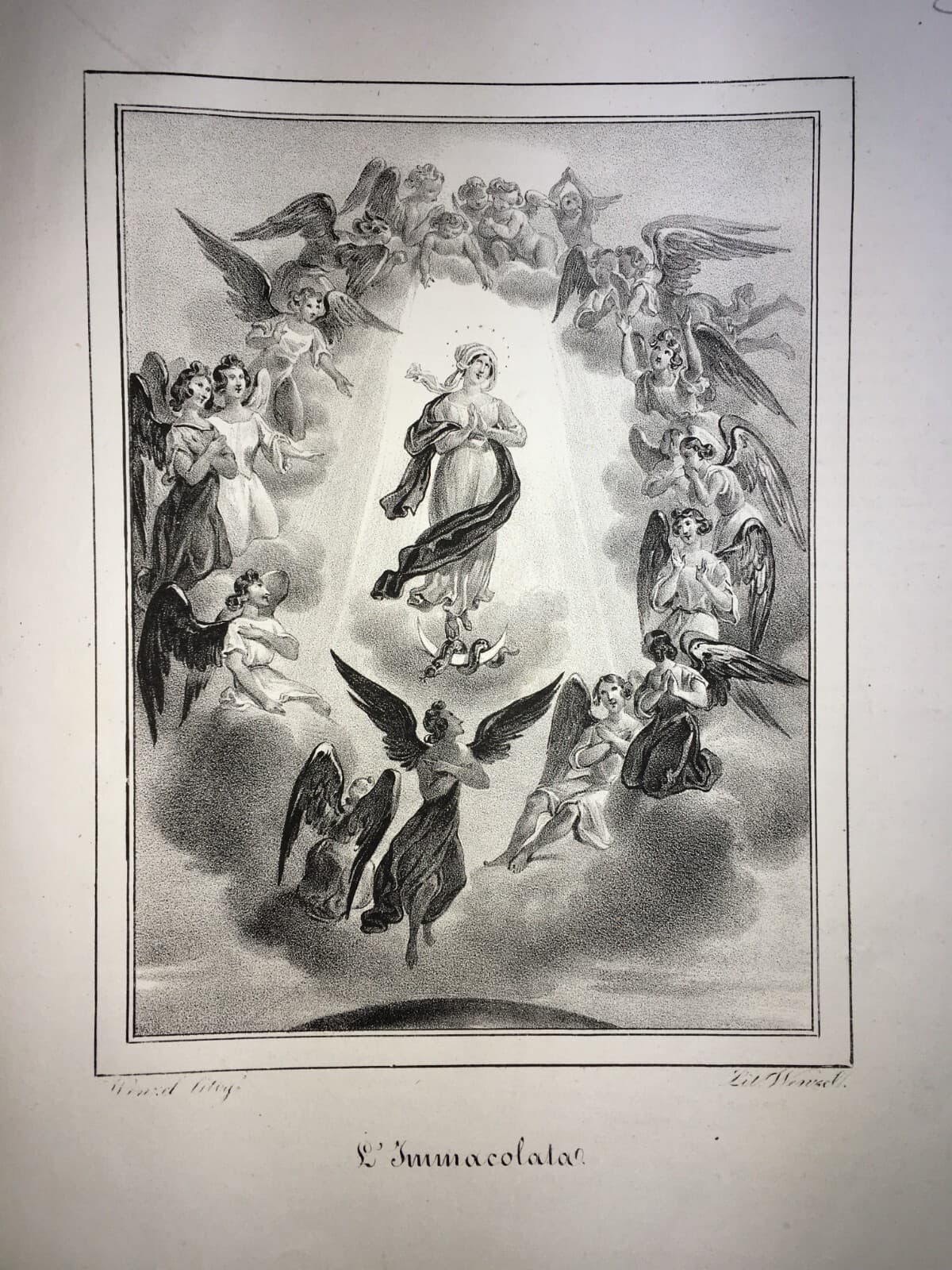 Stampa Popolare Devozionale, Madonna Immacolata, Iconografia Con Angeli, Wenzel, XIX Secolo