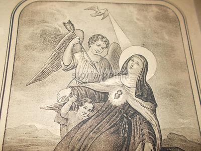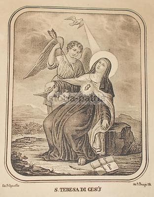 Santa Teresa Di Gesù, Antica Stampa Popolare Devozionale, Litografia Napoletana Del XIX Secolo