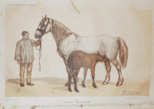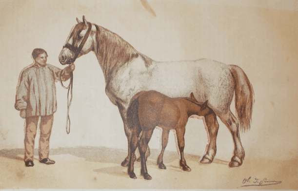 Zoologia: Cavalli, Giumenta. Antica Stampa Litografica Di De Penne, Zanote, XIX Secolo
