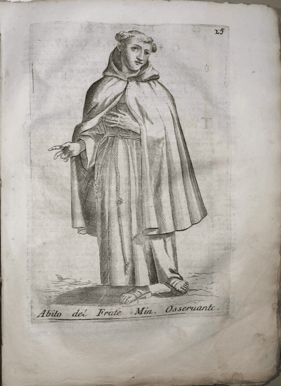 Costumi, Abiti Religiosi, Frati Minori Osservanti, Antica Incisione Da Collezione