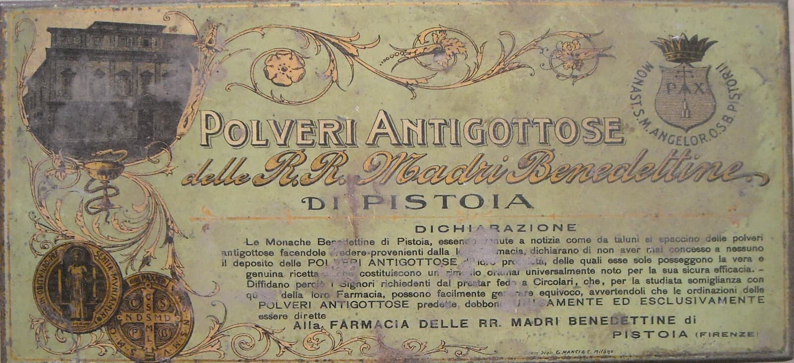Scatola Pubblicitaria Farmacia: Polveri Antigottose Delle Madri Benedettine Di Pistoia