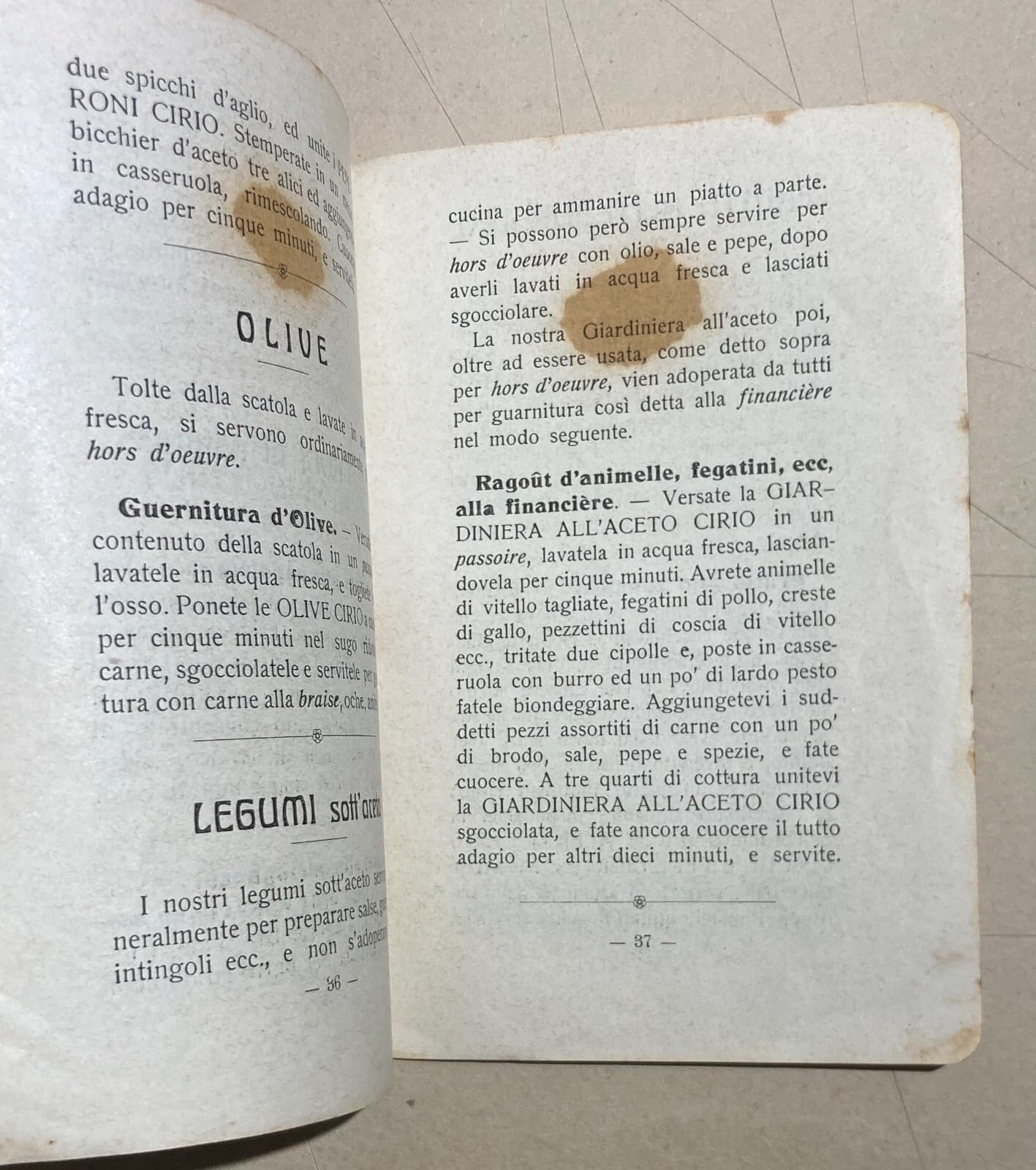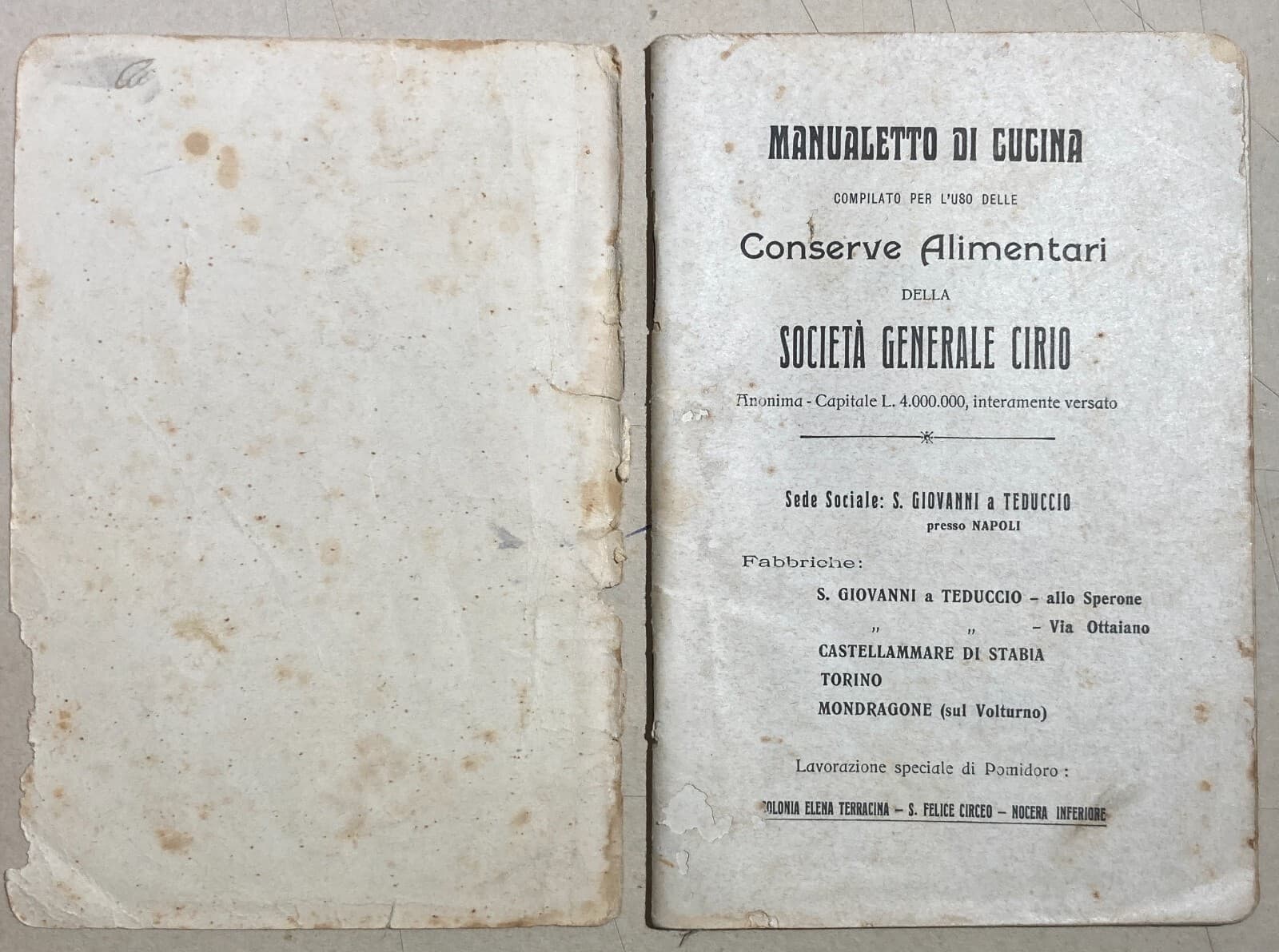 Cucina: Antico Ricettario Cirio, Conserve Alimentari, Napoli. Ortaggi E Pomodori