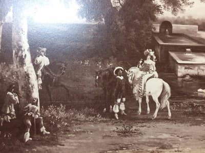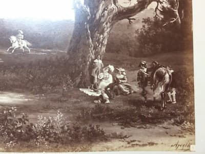 Caccia E Cacciatori: Scena Paesaggistica Con Dame E Cavalieri, Arte Piemontese Dell'Ottocento