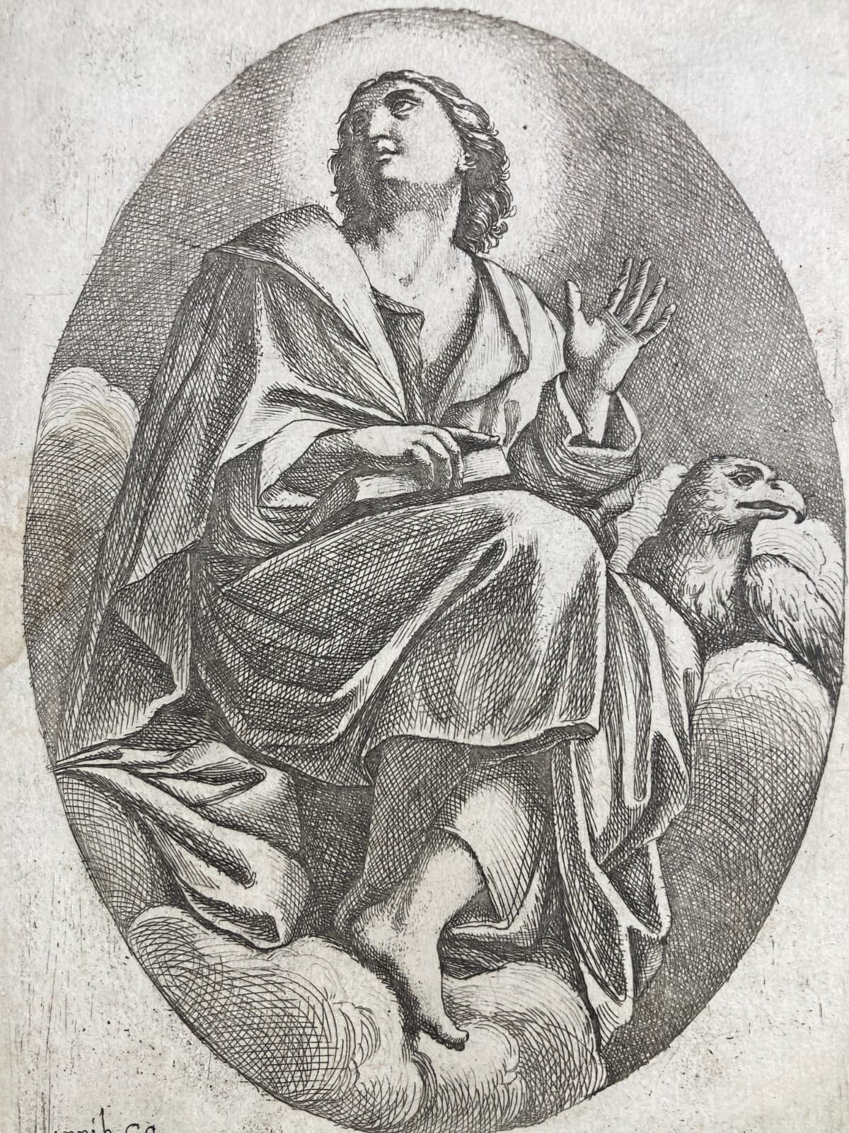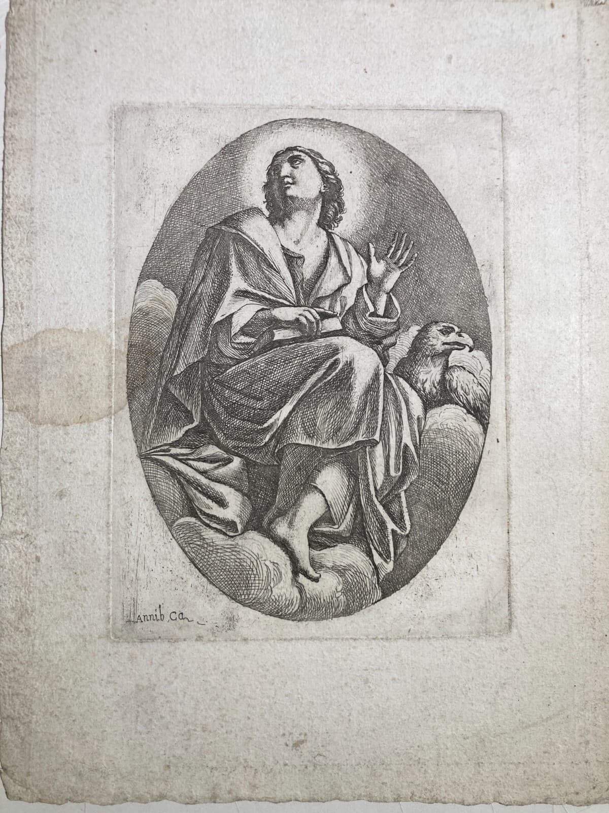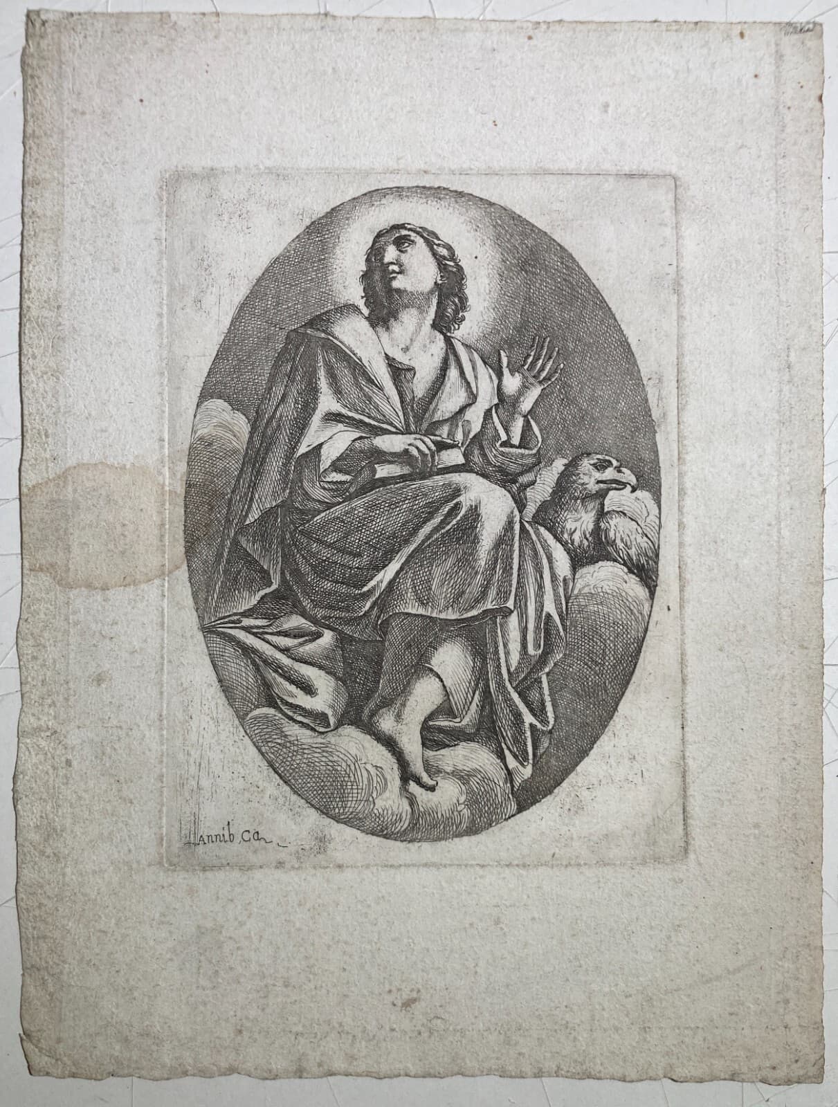 Arte Devozionale: Antica Incisione Di San Giovanni Evangelista, Firmata Carracci