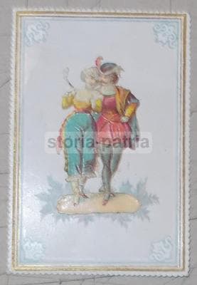 Antica Figurina Cromolitografica: Scena Galante E Costumi d'Epoca