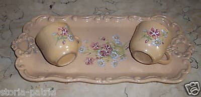 Artistico Vassoio Con Tazzine In Ceramica d'Epoca Con Motivi Floreali