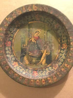 Arte Popolare Devozionale: Madonna Del Rosario Di Pompei, Antica Latta Cromolitografata